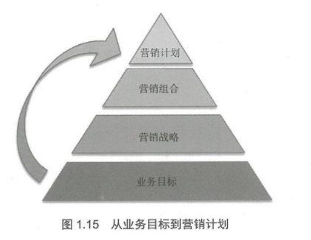 业务目标、营销战略和营销计划的层次结构如图1.15所示。