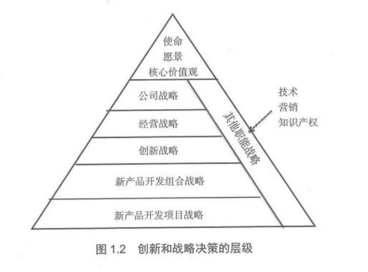 大多数组织通过创新实现生存和增长。基于公司战略的创新战略为整个组织指引了创新方向,提供了创新架构。大多数组织都包含有多个职能部门,毎个职能部门需要制定自己的战略,以贡献公司战略、支持创新战略。图1.1和图1.2显示了组织内部的决策战略层级,以及创新在战略层级中的地位。